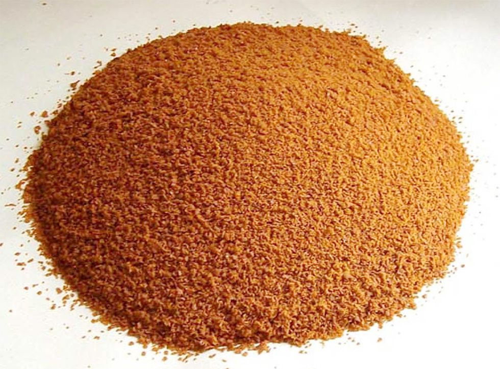 2、固態產品為棕褐色,紅褐色粉末,極易溶于水。