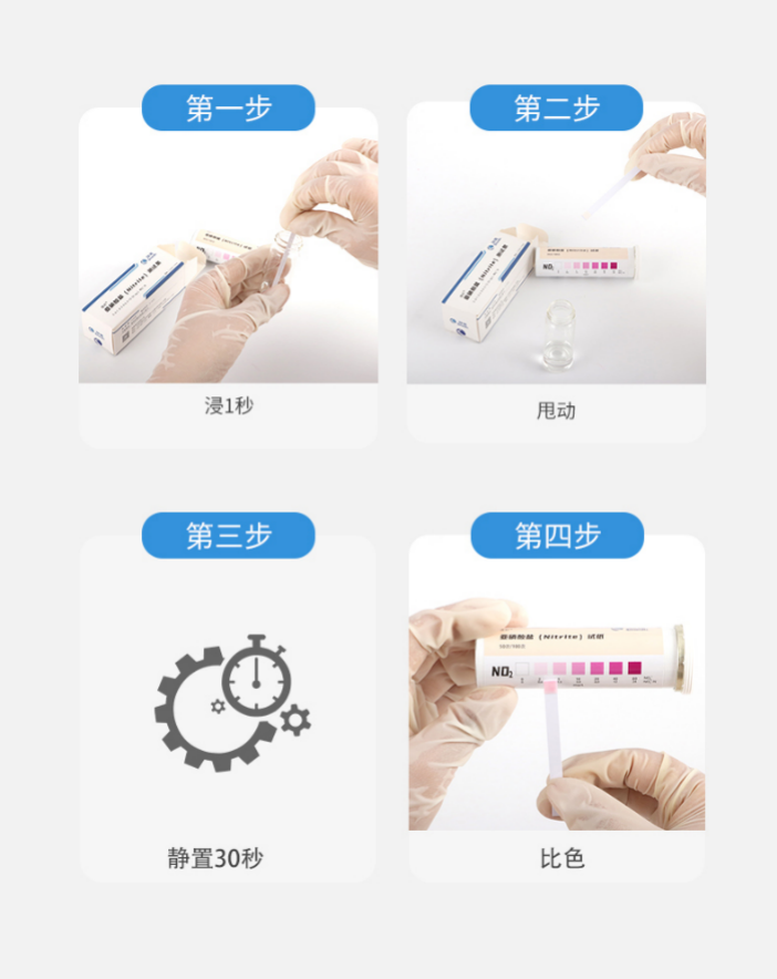 亞硝酸鹽試紙條可以迅速與水樣中的亞硝酸鹽發生顯色反應,顯色越深,表示樣品中亞硝酸鹽的含量越高。適用于水質中硝酸鹽的半定量檢測。